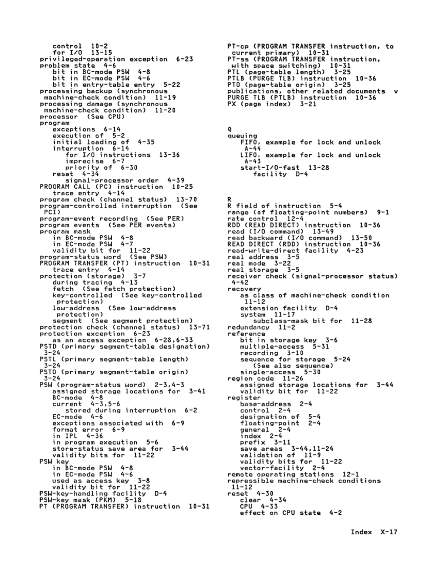 program-status word(See   PSW)   PROGRAM   TRANSFER   (PT)  instruction  10-31   trace  entry  4-14