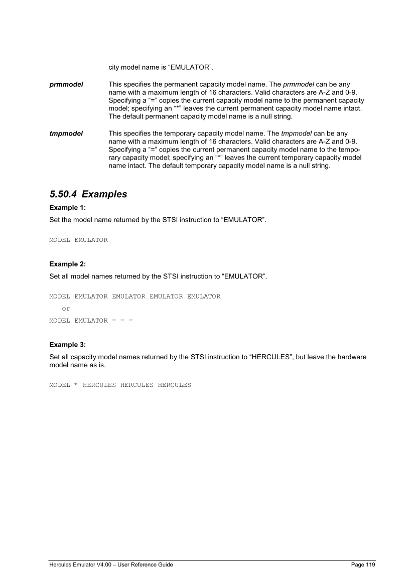 The default model name, if the MODEL system parameter is not coded, is “EMULATOR”.