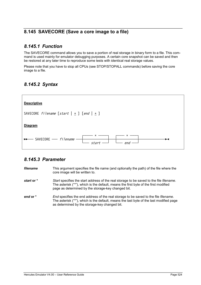 Please  note  that  you  have  to  stop  all  CPUs  (see  STOP/STOPALL  commands)  before  saving  the  core