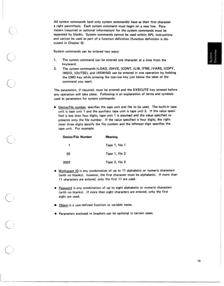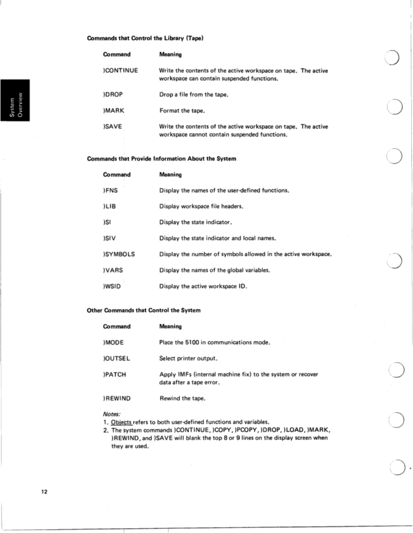2. The System commands )CONTINUE, )COPY, )PCOPY, )DROP, )LOAD, )MARK,