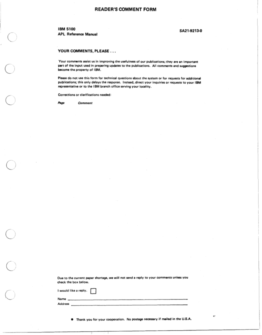 0 Thank you for your cooperation. No postage necessary if mailed in the U.S.A.