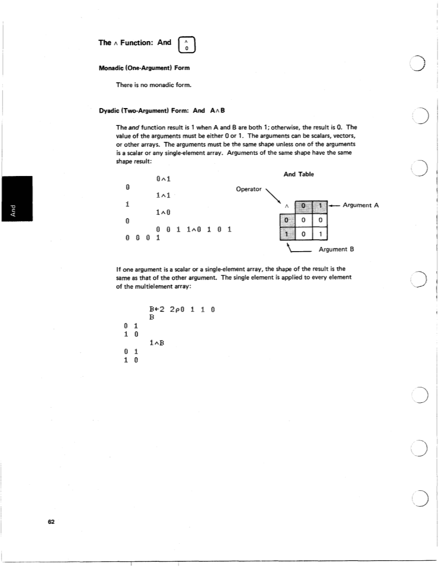 The and function result is 1 when A and 6 are both 1; otherwise, the result is 0. The