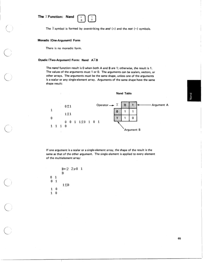 The not function result is 1 when B is 0 and 0 when B is 1. The values of the argu-