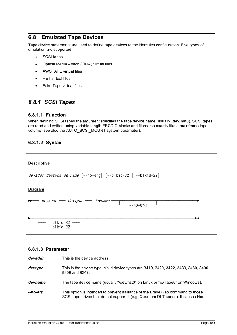 When defining SCSI tapes the argument specifies the tape device name (usually /dev/nst0). SCSI tapes